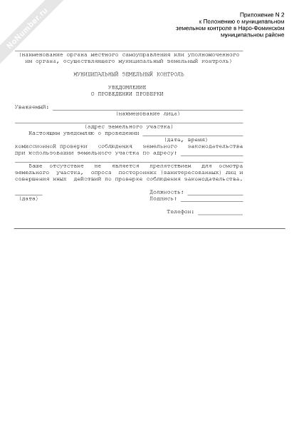 - 557Уведомление о проведении проверки соблюдения земельного законодательства в Наро-Фоминском муниципальном районе Московской области