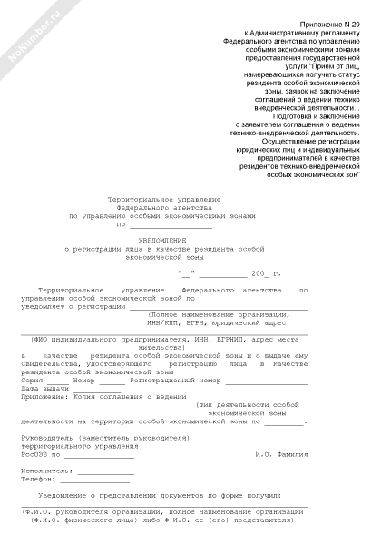 - 703Уведомление о регистрации лица в качестве резидента технико-внедренческой особой экономической зоны