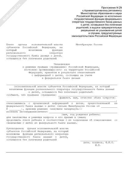 - 715Уведомление о решении граждан (гражданина) Российской Федерации, постоянно проживающих(его) на территории Российской Федерации, принятом в результате ознакомления с информацией о детях, состоящих на учете в федеральном банке данных