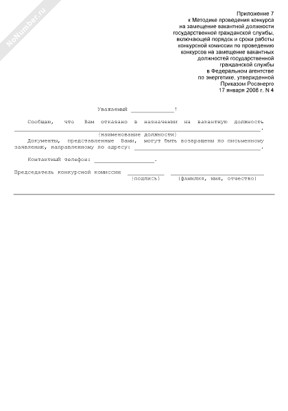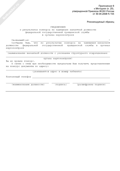 - 709Уведомление о результатах конкурса на замещение вакантной должности федеральной государственной гражданской службы в органах наркоконтроля (отрицательный результат)