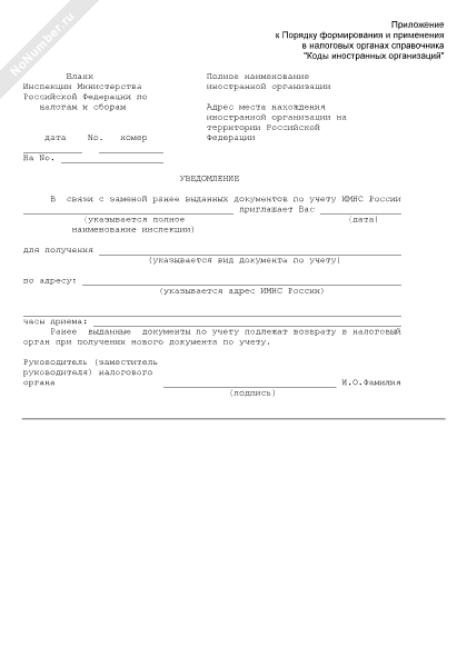 - 146Уведомление иностранной организации о замене ранее выданных документов, подтверждающих постановку на учет в налоговых органах Российской Федерации