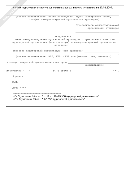 - 147Уведомление иных саморегулируемых организаций аудиторов о прекращении членства аудиторской организации (или аудитора) в саморегулируемой организации аудиторов
