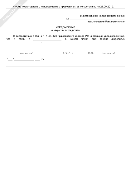 - 148Уведомление исполняющим банком банка-эмитента о закрытии аккредитива