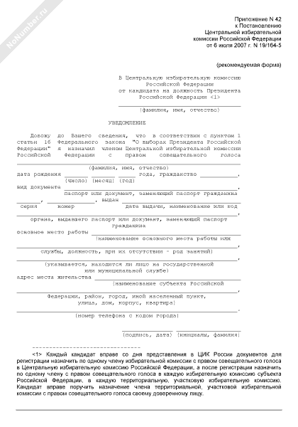 - 152Уведомление кандидата на должность Президента Российской Федерации о назначении члена Центральной избирательной комиссии Российской Федерации с правом совещательного голоса