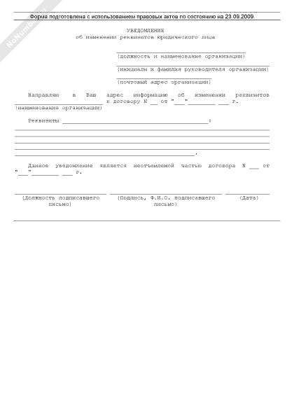 - 155Уведомление контрагента по договору об изменении реквизитов юридического лица