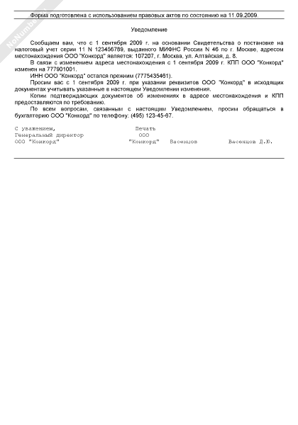 - 157Уведомление контрагентам о смене местонахождения фирмы