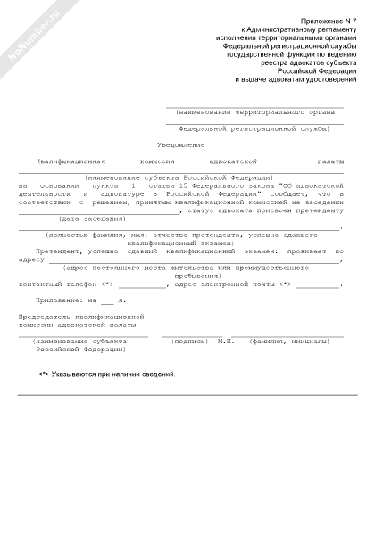 - 153Уведомление квалификационной комиссии адвокатской палаты о присвоении претенденту статуса адвоката территориального органа Федеральной регистрационной службы