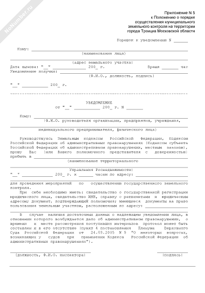 - 144Уведомление землепользователю для проведения мероприятий по осуществлению государственного земельного контроля на территории города Троицка Московской области