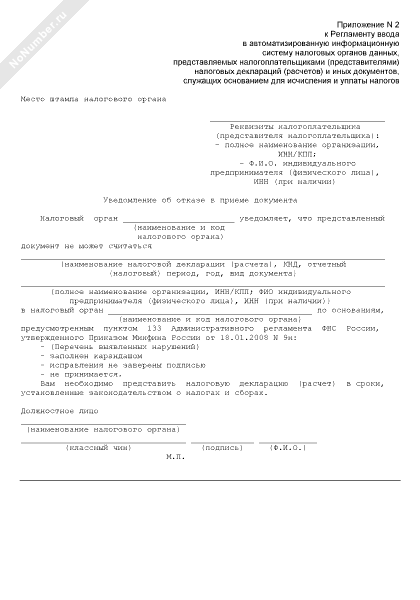 Уведомление об отказе в приеме документа налоговым органом