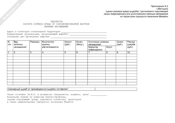 - 261Ведомость расчета размера вреда от санкционированной вырубки зеленых насаждений на территории городского поселения Можайск Московской области