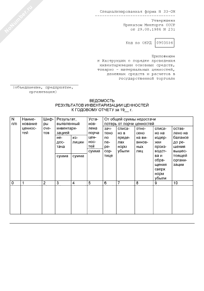 - 263Ведомость результатов инвентаризации ценностей к годовому отчету. Специализированная форма № 33-ОН