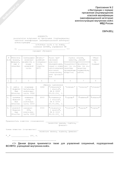 - 269Ведомость результатов испытаний на присвоение (подтверждение) классной квалификации (квалификационной категории) военнослужащим