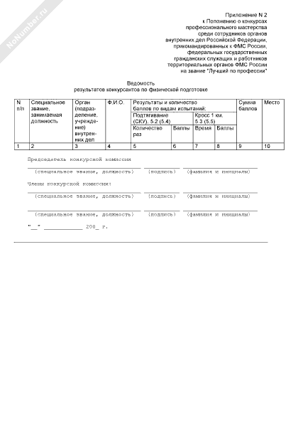 - 270Ведомость результатов конкурсантов по физической подготовке среди сотрудников органов внутренних дел Российской Федерации, прикомандированных к ФМС России, федеральных государственных гражданских служащих и работников территориальных органов ФМС России