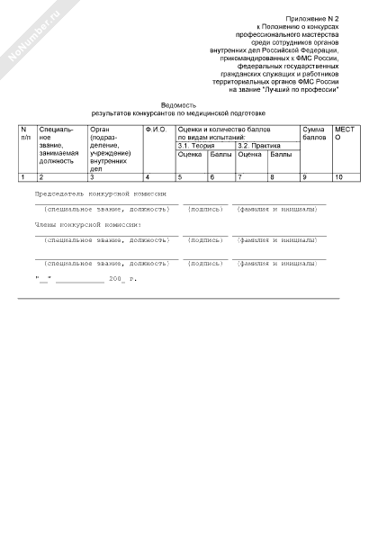 - 272Ведомость результатов конкурсантов по медицинской подготовке среди сотрудников органов внутренних дел Российской Федерации, прикомандированных к ФМС России, федеральных государственных гражданских служащих и работников территориальных органов ФМС России