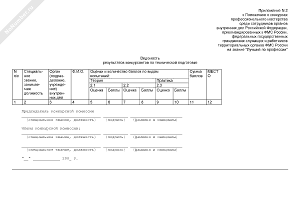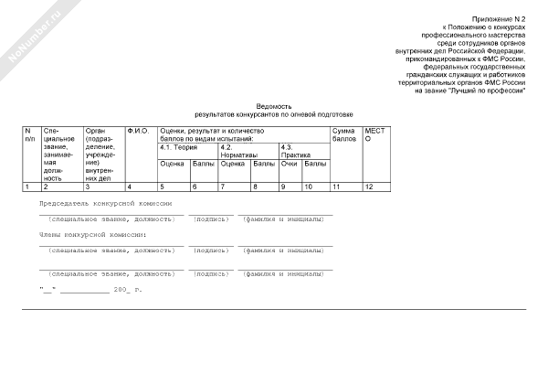 - 271Ведомость результатов конкурсантов по специальной подготовке среди сотрудников органов внутренних дел Российской Федерации, прикомандированных к ФМС России, федеральных государственных гражданских служащих и работников территориальных органов ФМС России