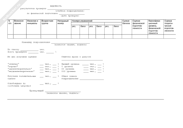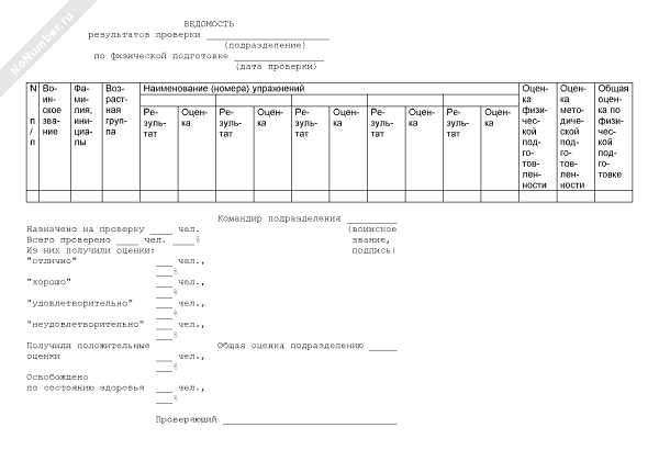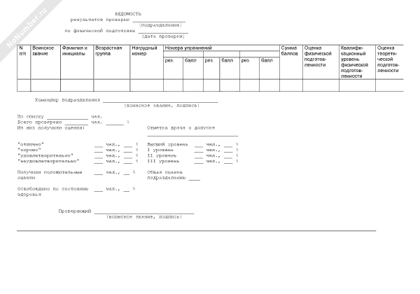 - 278Ведомость результатов проверки воинского подразделения по физической подготовке (форма № 1)