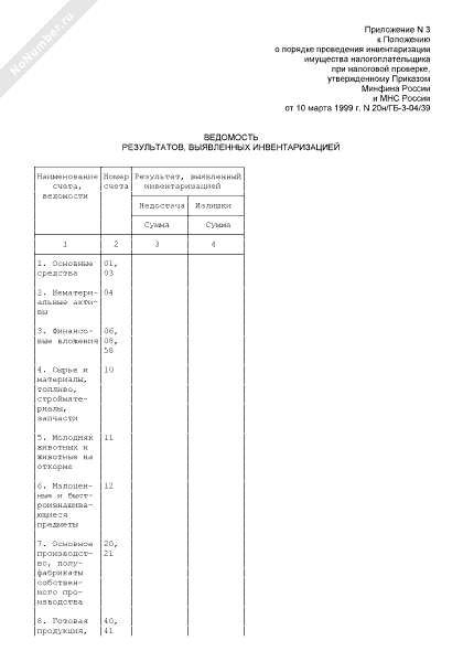 - 264Ведомость результатов, выявленных инвентаризацией имущества налогоплательщика при налоговой проверке