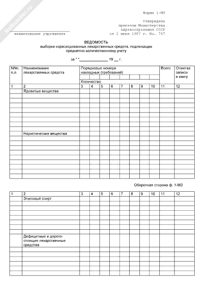 - 31Ведомость выборки израсходованных лекарственных средств, подлежащих предметно-количественному учету. Форма № 1-МЗ