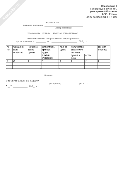 - 32Ведомость выдачи питания спортсменам, тренерам, судьям, другим участникам спортивного мероприятия