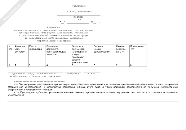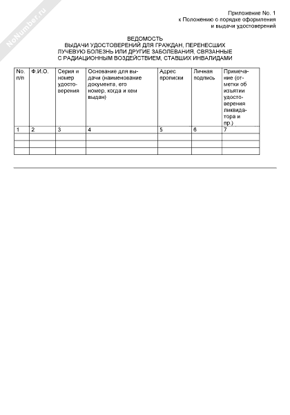 - 33Ведомость выдачи удостоверения гражданам, получившим или перенесшим лучевую болезнь или другие заболевания, связанные с радиационным воздействием вследствие катастрофы на Чернобыльской АЭС; инвалидам вследствие чернобыльской катастрофы