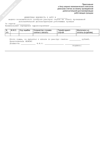 - 392Дефектная ведомость (приложение к акту медико-экономического контроля реестров счетов на оплату проведенной дополнительной диспансеризации работающих граждан в Московской области)