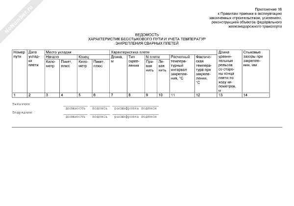- 381Ведомость характеристик бесстыкового железнодорожного пути и учета температур закрепления сварных плетей
