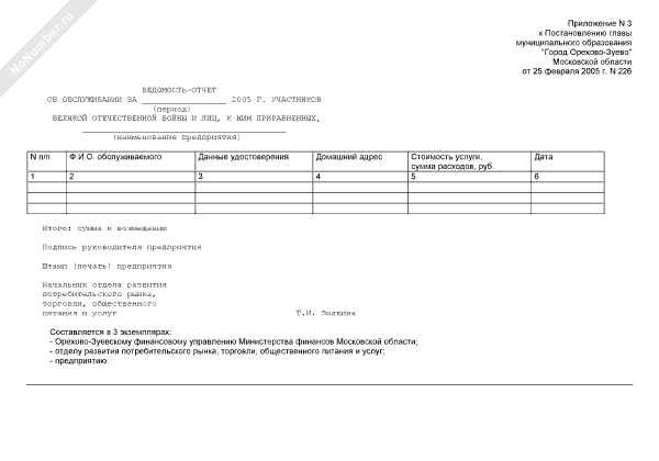 - 385Ведомость-отчет об обслуживании предприятиями сферы бытовых услуг участников Великой Отечественной войны и лиц, к ним приравненных на территории города Орехово-Зуево Московской области