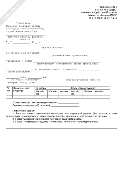 - 382Ведомость-заказ на обеспечение питанием участников и судей спортивных соревнований и учебно-тренировочных сборов