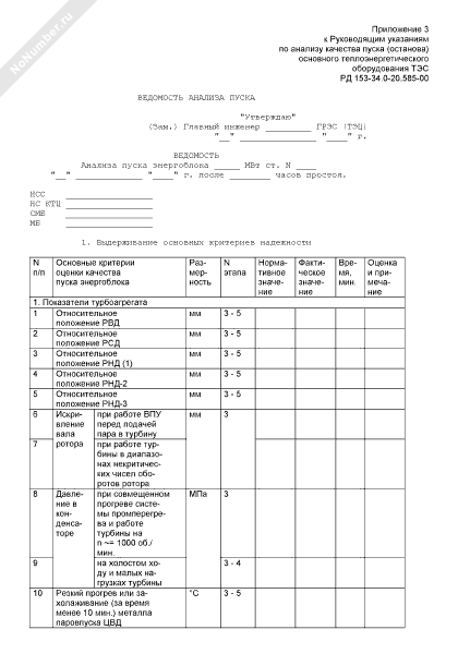 Ведомость анализа пуска энергоблока ТЭС