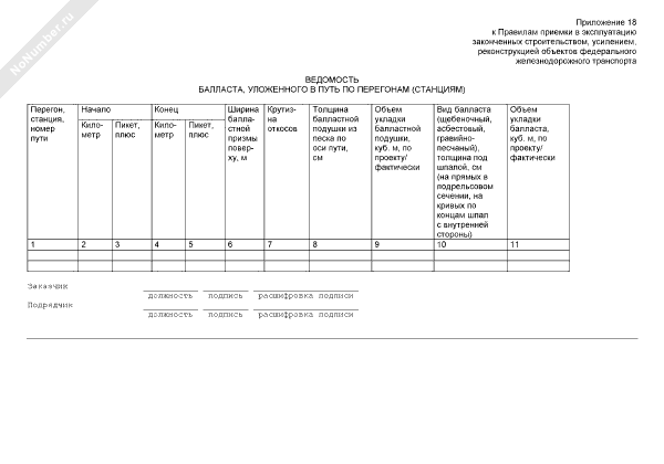 Ведомость балласта, уложенного в путь по перегонам (станциям)