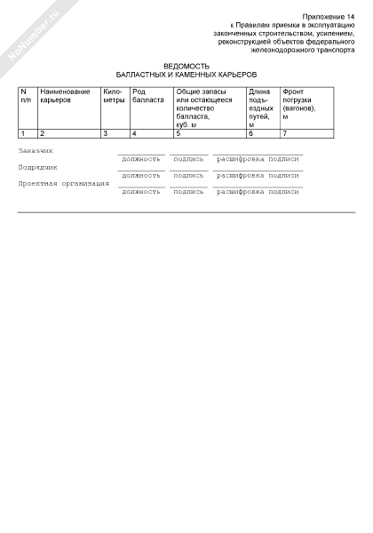 Ведомость балластных и каменных карьеров железнодорожной линии