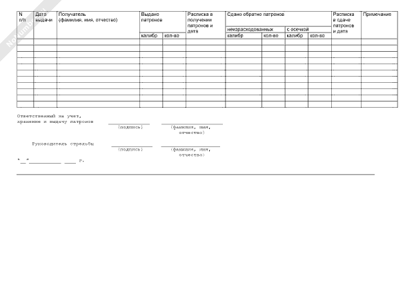Раздаточно-сдаточная ведомость в тире, стрелково-стендовом комплексе, на стрельбище (рекомендуемый образец заполнения)