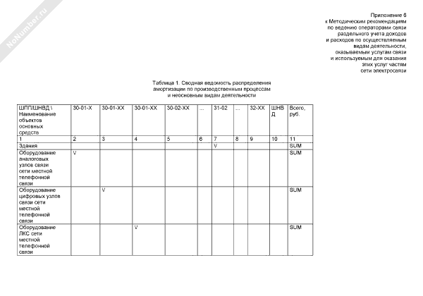 Рекомендуемые сводные ведомости распределения расходов. сводная ведомость распределения амортизации по производственным процессам и неосновным видам деятельности (таблица 1)