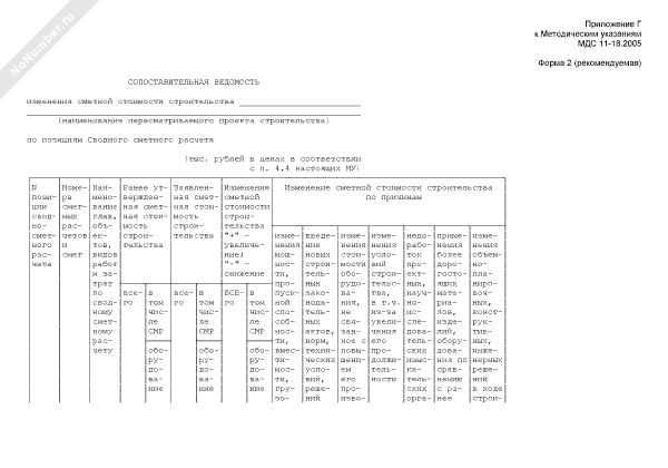 Сопоставительная ведомость изменения сметной стоимости строительства. Форма № 2 (рекомендуемая)
