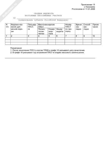 Ведомость постоянных пробных площадей на рубки ухода лесничества
