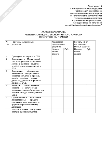 Сводная ведомость результатов медико-экономического контроля лекарственной помощи (рекомендуемый образец заполнения)