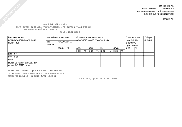 Сводная ведомость результатов проверки территориального органа ФССП России по физической подготовке (форма № 7)