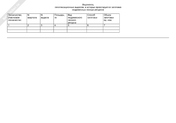 Ведомость лесотаксационных выделов, в которых проектируется заготовка недревесных лесных ресурсов (рекомендуемый образец заполнения)