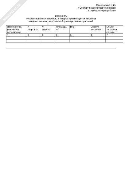 Ведомость лесотаксационных выделов, в которых проектируется заготовка пищевых лесных ресурсов и сбор лекарственных растений (рекомендуемый образец заполнения)