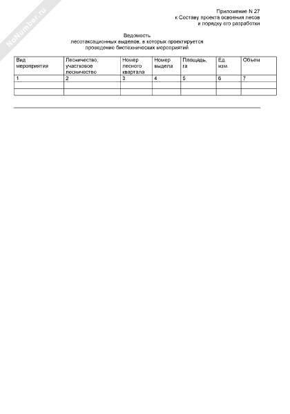 Ведомость лесотаксационных выделов, в которых проектируется проведение биотехнических мероприятий (рекомендуемый образец заполнения)