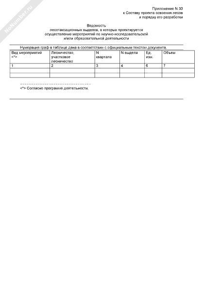 Ведомость лесотаксационных выделов, в которых проектируется осуществление мероприятий по научно-исследовательской и/или образовательной деятельности (рекомендуемый образец заполнения)
