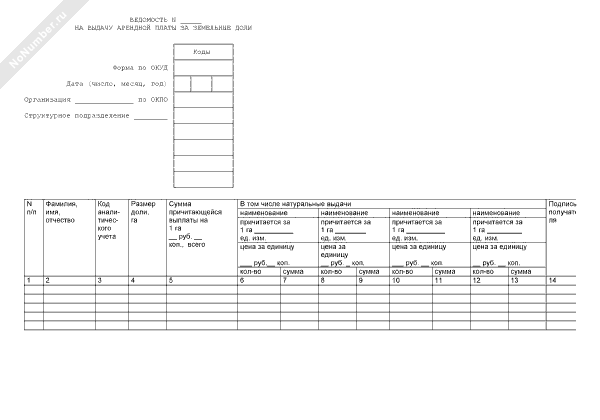 Ведомость на выдачу арендной платы за земельные доли. Форма № 416-АПК