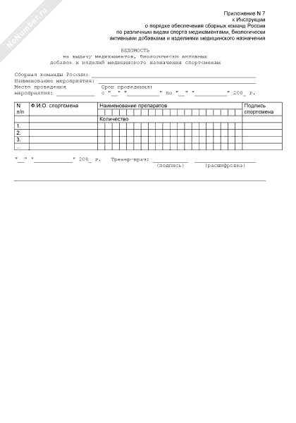 Ведомость на выдачу медикаментов, биологически активных добавок и изделий медицинского назначения спортсменам (рекомендуемый образец заполнения)