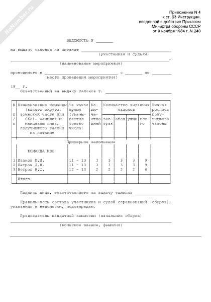 - Источник– Приказ Министра обороны СССР от 09.11.1984 № 240