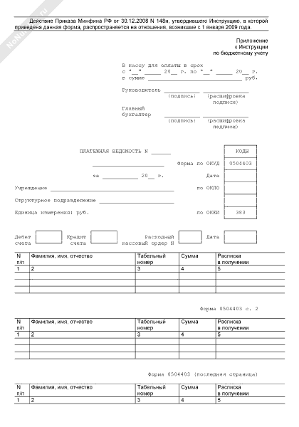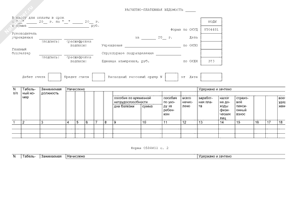 Расчетно-платежная ведомость учреждения бюджетного учета