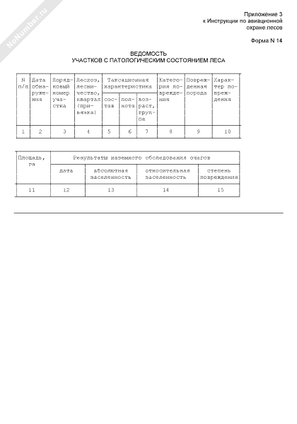 Ведомость участков с патологическим состоянием леса (форма № 14)