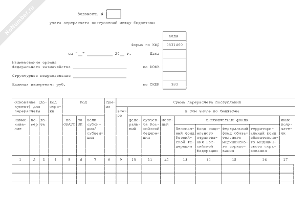 Ведомость распределения поступлений (рекомендуемый образец заполнения)