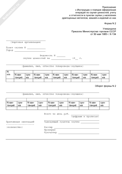 Ведомость скупки ценностей (форма № 2)