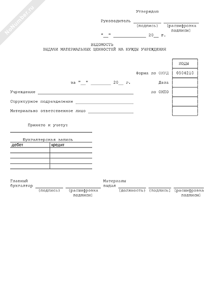 Ведомость выдачи материальных ценностей на нужды учреждения