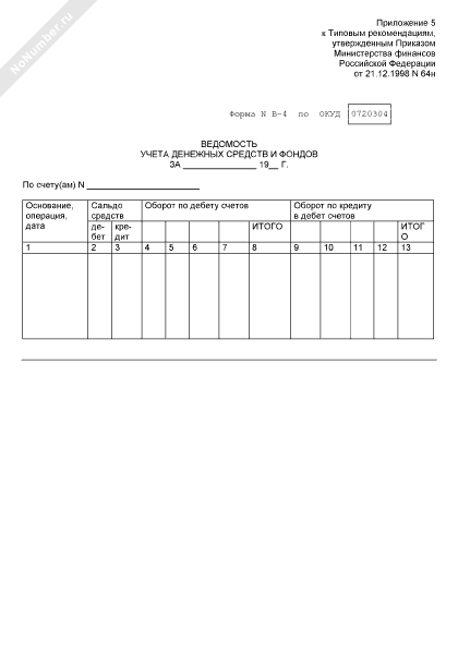 - Источник– Приказ Минфина РФ от 21.12.1998 № 64н